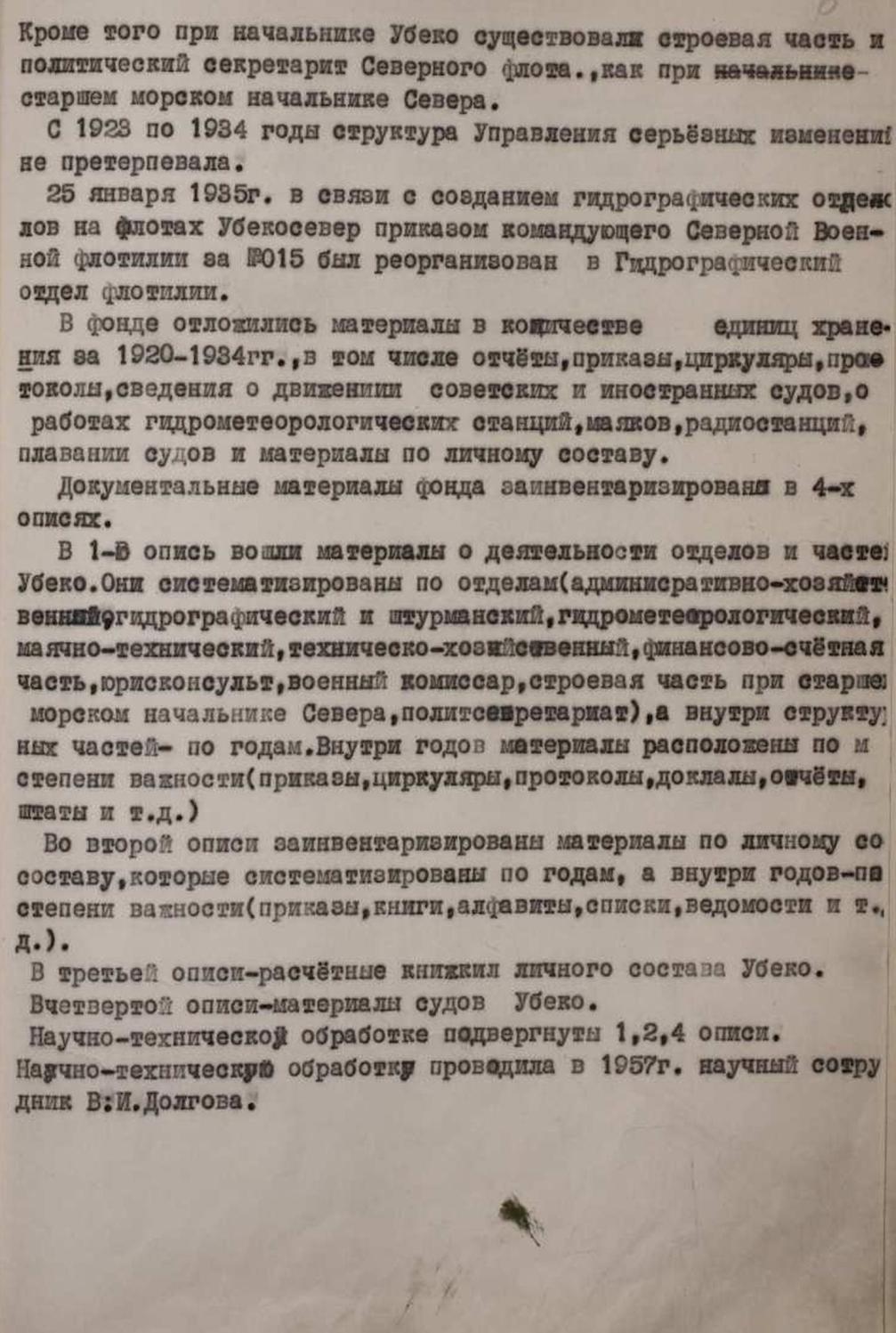 Научно—техническую обработку проводила в 1957 г. научный сотрудник В. И. Долгова.