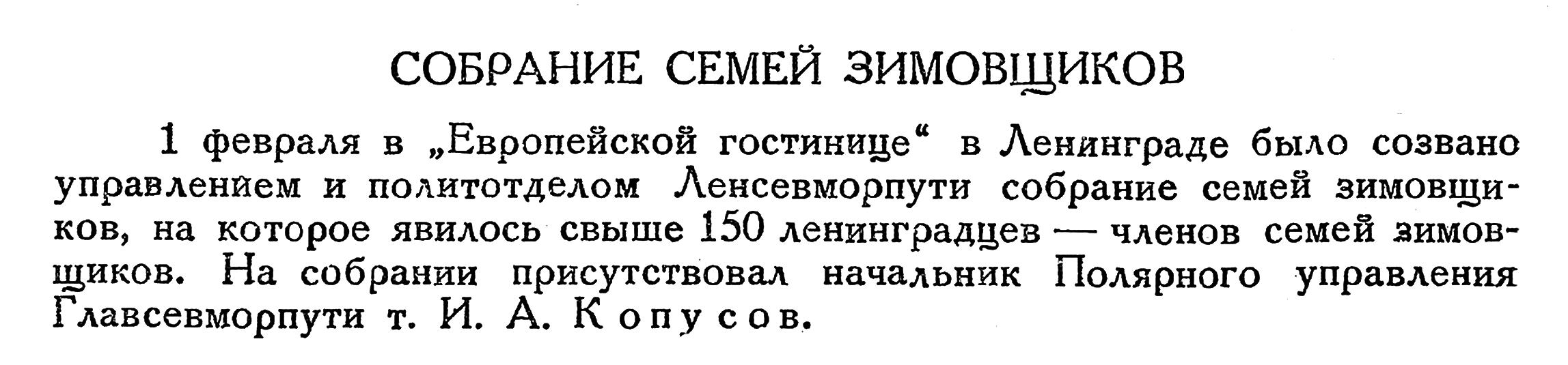 1. На ледоколе наблюдалось систематическое пьянство и отсутствие дисциплины: начальник зимовки Рузов во время выгрузки с оружием в руках заставил людей работать. В другом случае капитан ледокола Хлебников, пом. начальника экспедиции по политической части Попов и Рузов, напившись пьяными, пытались изнасиловать одну из сотрудниц экспедиции. Вопрос этот, разбиравшийся на бюро судовой ячейки, был замят.