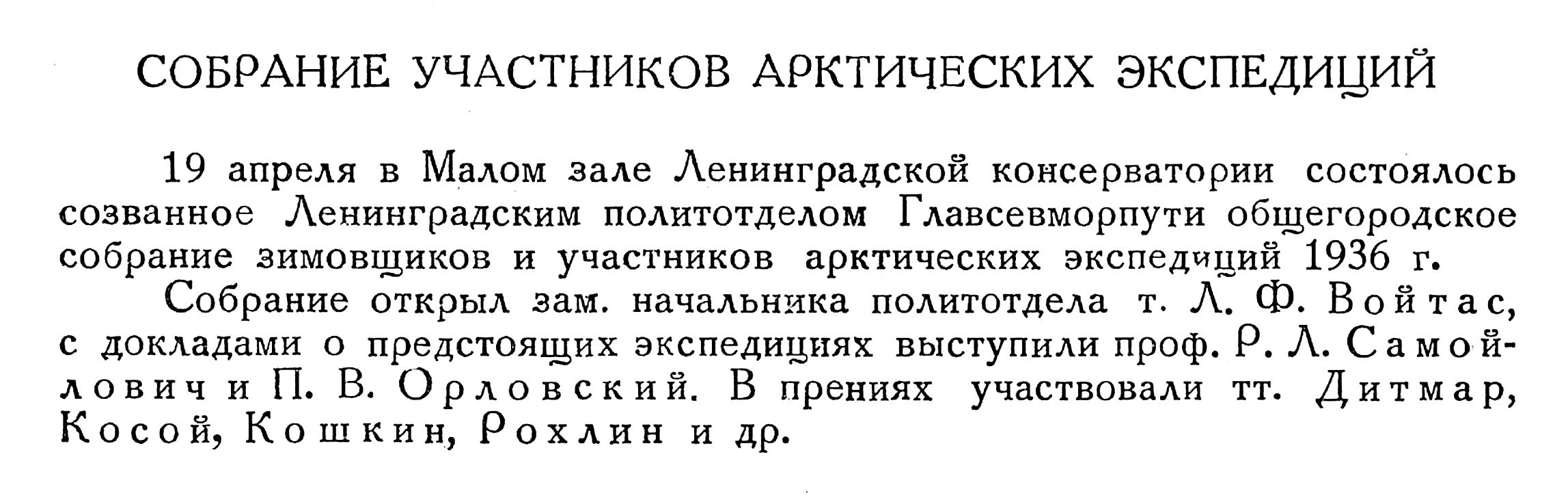 1. Для нужд экспедиции Всесоюзный арктический институт приобрел за 50 тыс. руб. небольшой мотобот «Айсберг». Именно для того, чтобы доставить бот в Архангельск на пароходе или по железной дороге, ВАИ решил проделать с ним эксперимент дальнего плавания, информировав общественность о рейсе «Фонтанка — мыс Желания». Бот вышел из Ленинграда вопреки запрету регистра, имел на борту в качестве пассажира сына проф. Самойловича. Это обстоятельство сорвало работы экспедиции и явилось предметом обсуждения на закрытом партийном собрании судовой ячейки. Собрание констатировало, что переход бота морем до Архангельска, вызвав непроизводительные крупные расходы, был связан исключительно с погоней за сенсацией; что начальник экспедиции Горбацкий, имея полную возможность заменить в Архангельске бот или хотя бы двигатель, не сделал этого, и это ставит под угрозу срыва работу экспедиции, на которую уже затрачено 100 тыс. руб.