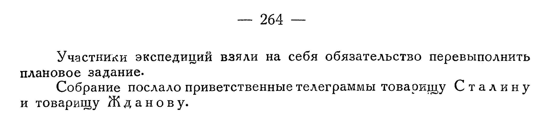 2. [...] Перевод на Лену парохода «Партизан Щетинкин» был сорван. В оправдание чего 12 октября Модзалевским и Измайловым задним числом был составлен акт, в котором срыв перевода сваливался на ледовые условия и засоленность котлов парохода. Наряду с этим было сорвано обеспечение переведенного на Лену теплохода «Первая Пятилетка» нефтетопливом и запчастями (обеспеченность к навигации 1934 г. не превышает 15 ходовых дней).