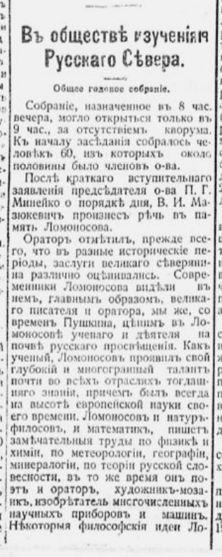 {6} Отчет Архангельского общества изучения Русского Севера за 1910 и 1911 год. Архангельск: губернская типография, 1912. С.3-11.