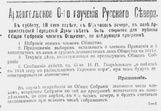 {12} Отчет Архангельского общества изучения Русского Севера за 1914 год. Архангельск: губернская типография, 1915. С.37.