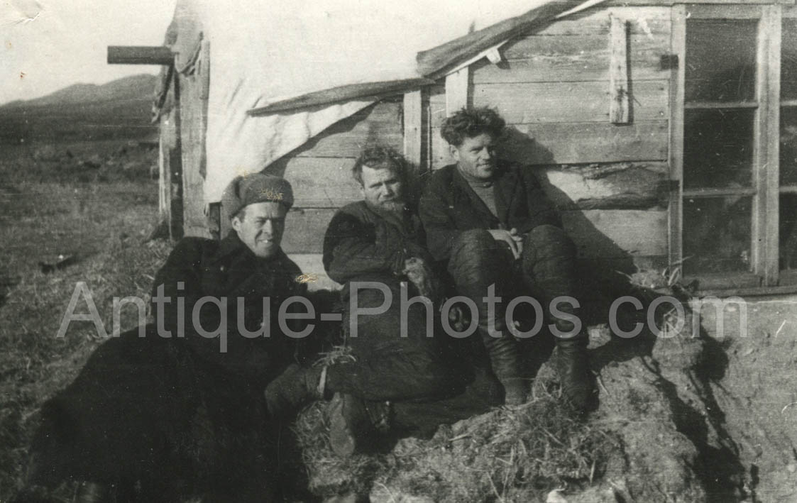 Фото № 81. "Бухта Угольная, 1937 г. Дронников, Любимов, Волков". Все запечатленные лица нам уже знакомы по предыдущим фотографиями.