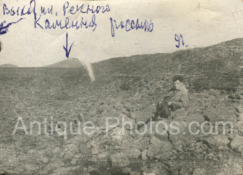 Фото № 84. Прекрасно знакомый всем следящим за этой темой участник экспедиции геолог Тимофей Васильевич Лопатников. На левом нагрудном кармане гимнастерки - Знак "Ворошиловский стрелок" (учрежден Центральным комитетом ОСОАВИАХИМа 29 декабря 1932 года).