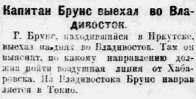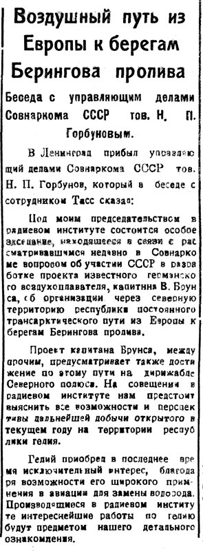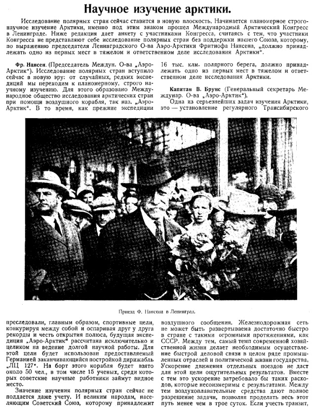 Опыты этих полетов будут иметь, наконец, решающее значение для проекта трансарктических воздушных рейсов капитана Брунса из Амстердама через Копенгаген, Ленинград, Архангельск, Ном, Унимак (на Алеутских островах) в Иокогаму, или же в Ванкувер и Сан-Франциско.