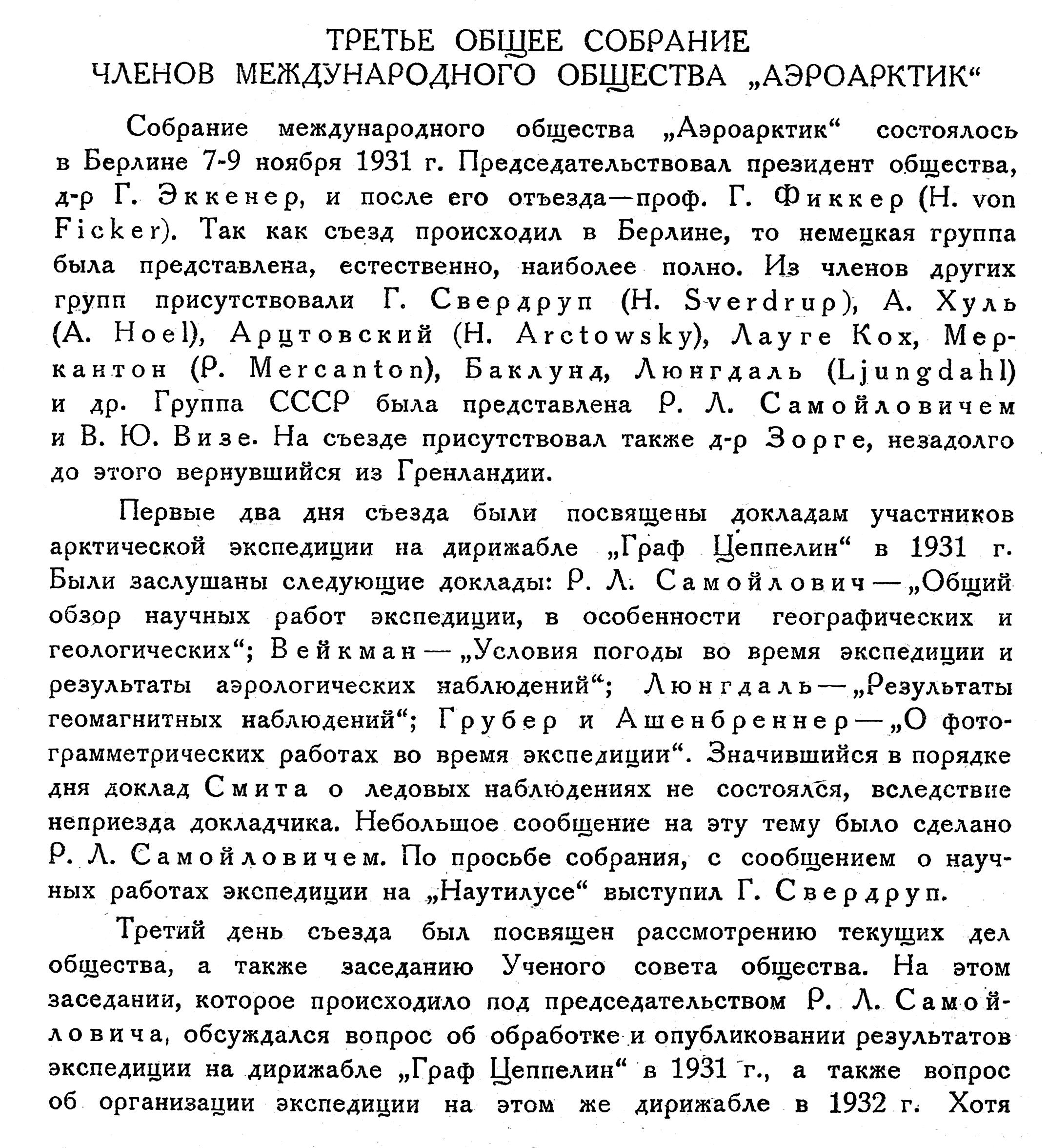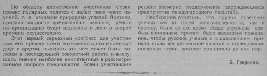 Таким образом, наука и мировое хозяйство являются одинаково заинтересованными в осуществлении и проведении в жизнь трансарктических воздушных рейсов.