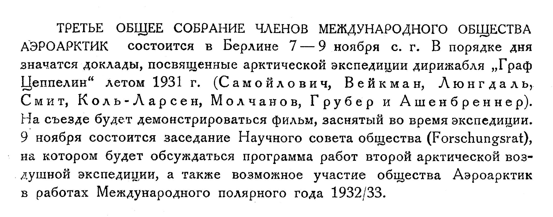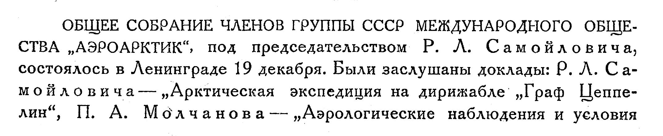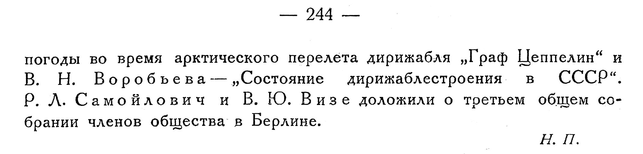1) Из письма, напечатанного в ст.: A. Mietheund H. Hergessll. MitZeppelin nach Spitzbergen.1911.Результаты первого полета должны быть дополнены такими же новыми экспедициями, а также экскурсиями в отдельные районы. Для этой цели будет возможно в местах особой географической важности высаживать небольшие станции и ставить их в радио-связь с ближайшими береговыми станциями, дабы, в случае необходимости, воздушный корабль мог им оказать быструю помощь.