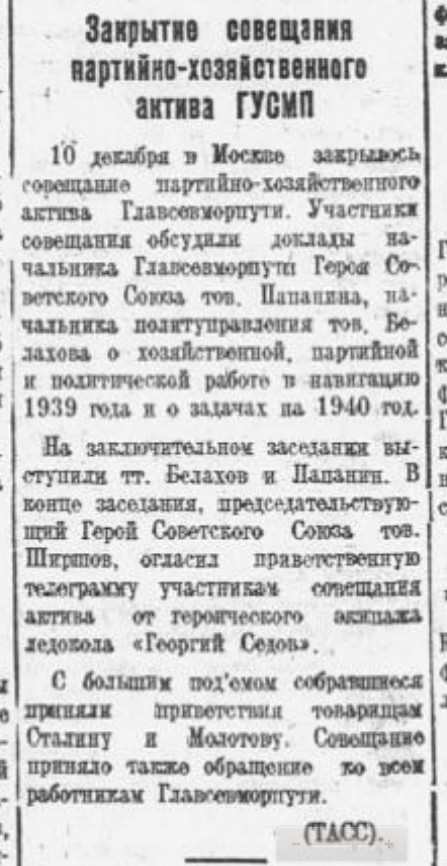 Совнарком Союза ССР и ЦК ВКП (б) признали необходимым создать политотделы и ввести институт парторгов в систему Главного Управления Северного Морского Пути. (ТАСС).