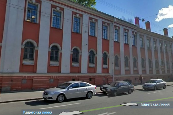 SVF: Застройку улицы открывает комплекс слитых в единое целое зданий Первого Кадетского корпуса. Сухопутный шляхетный, позднее Кадетский, корпус — привилегированное учебное заведение — был организован в 1731 году, а через год размещен в переданном ему Меншиковском дворце.
