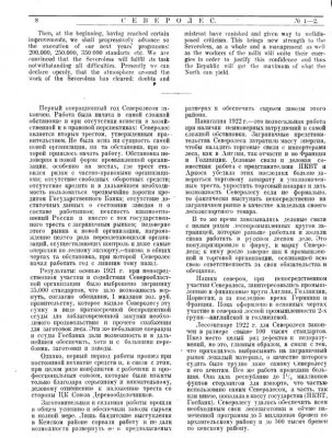 В отношении фрахтов на Белое море необходимо заметить, что норвежские пароходо-владельцы, которые, как видно из таблицы, являются главными поставщиками тоннажа под лес из Беломорского района, считали, что фрахты на Белое море в предшествующую навигацию 1922 г. были слишком низки для достаточного покрытия их расходов, почему перед открытием нынешней навигации они повели усиленную агитацию в печати, побуждая всех норвежских пароходовладельцев установить на Архангельск минимальный фрахт по 70 шил. за стандарт или 79 шил., включая обычные 9 шилл. за погрузку, и ни при каких условиях не понижать его. Поэтому Русско-Норвежскому обществу уже в самом начале своей деятельности пришлось столкнуться с чрезвычайно неблагоприятными условиями при фрахтованиях из Белого моря. Однако, благодаря сосредоточению этих фрахтований в одних руках и соответствующей выдержке общества «Руссонорс» при заявлении, его требований на фрахтовом рынке, удалось в общем не только зафрахтовать весь потребный Северолесу и другим лесным организациям тоннаж, но и по фрахтам, которые держались в среднем приблизительно в тех же пределах, как и в предшествующую навигацию в 1922 году, а именно: для Архангельска за пиленый лес около — 68 ш. 3 пенса; из Мезени — (откуда фрахты обычно на 5 шилл. дороже Архангельска), — около 73 шилл. и из Печоры — (обычно на 10 шиллингов дороже Архангельска) — около 77 шилл. 7 пенс. за стандарт; все эти фрахты выведены со включением 9 шилл. на стандарт за погрузку и портовые расходы в Архангельске.