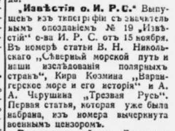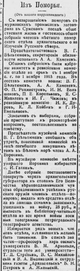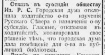 {12} Отчет Архангельского общества изучения Русского Севера за 1914 год. Архангельск: губернская типография, 1915. С.37.