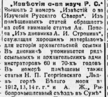 {8} Отчет Архангельского общества изучения Русского Севера за 1912 год. Архангельск: губернская типография, 1913. С.17-18.