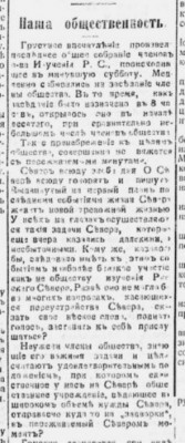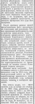 В 1912 году И.В.Сосновский стал одесским градоначальником, но остался членом Общества. Председателем был избран директор мужской гимназии А.Е.Суровцев, а ушедший с этого поста А.Ф.Шидловский сохранил за собой почетное членство {8}. На своих заседаниях Общество продолжало обсуждать насущные вопросы развития северного края: введение земства (доклад Н.В.Мефодиева), организация экспедиций на Новую Землю (доклад Г.Я.Седова), проблемы речного судоходства (доклад Н.В.Преображенского) {9}.