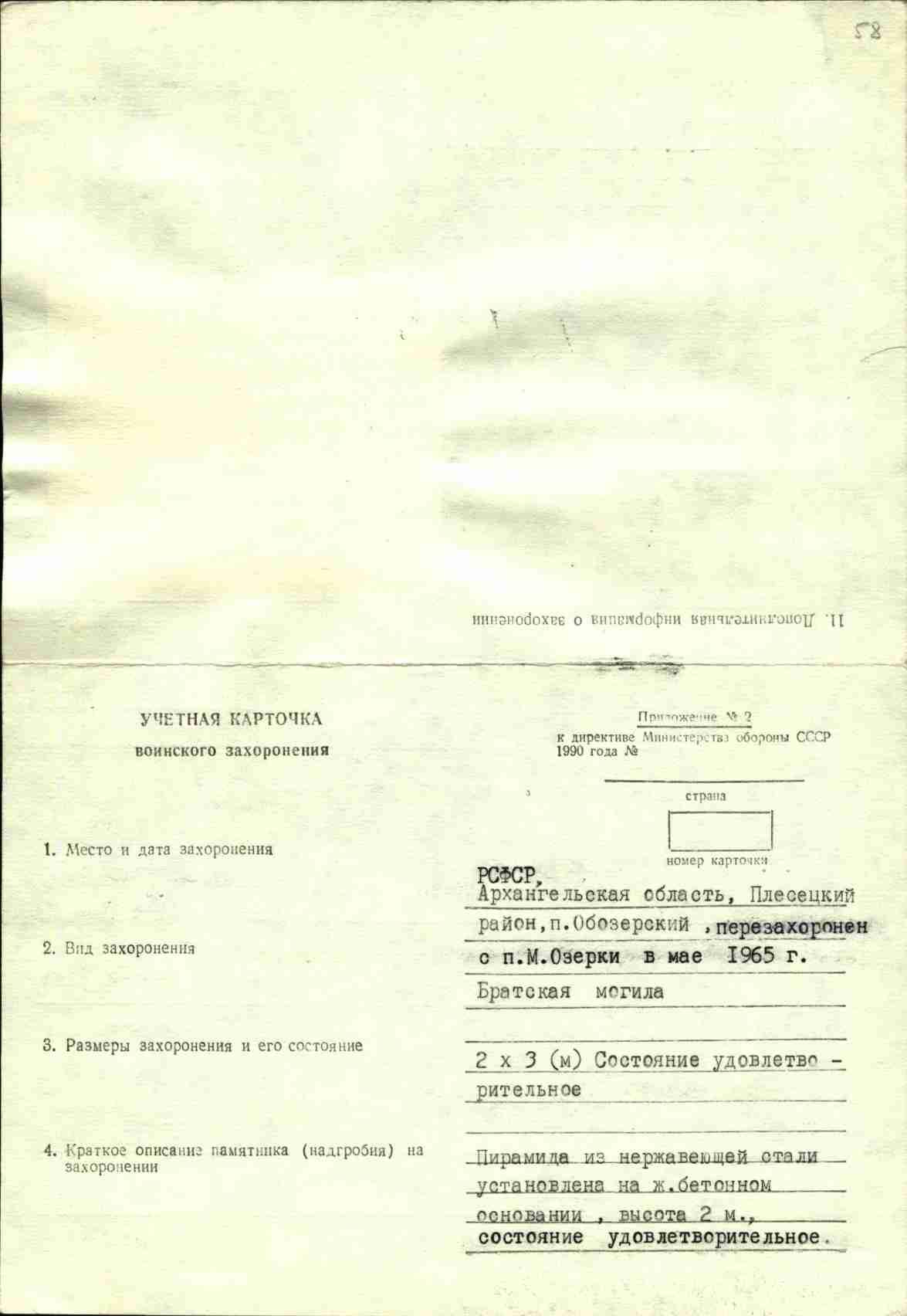 Список воинов погибших в период Отечественной войны 1941-1945г. и захороненных в братской могиле, на гражданском кладбище ст.Обозерская