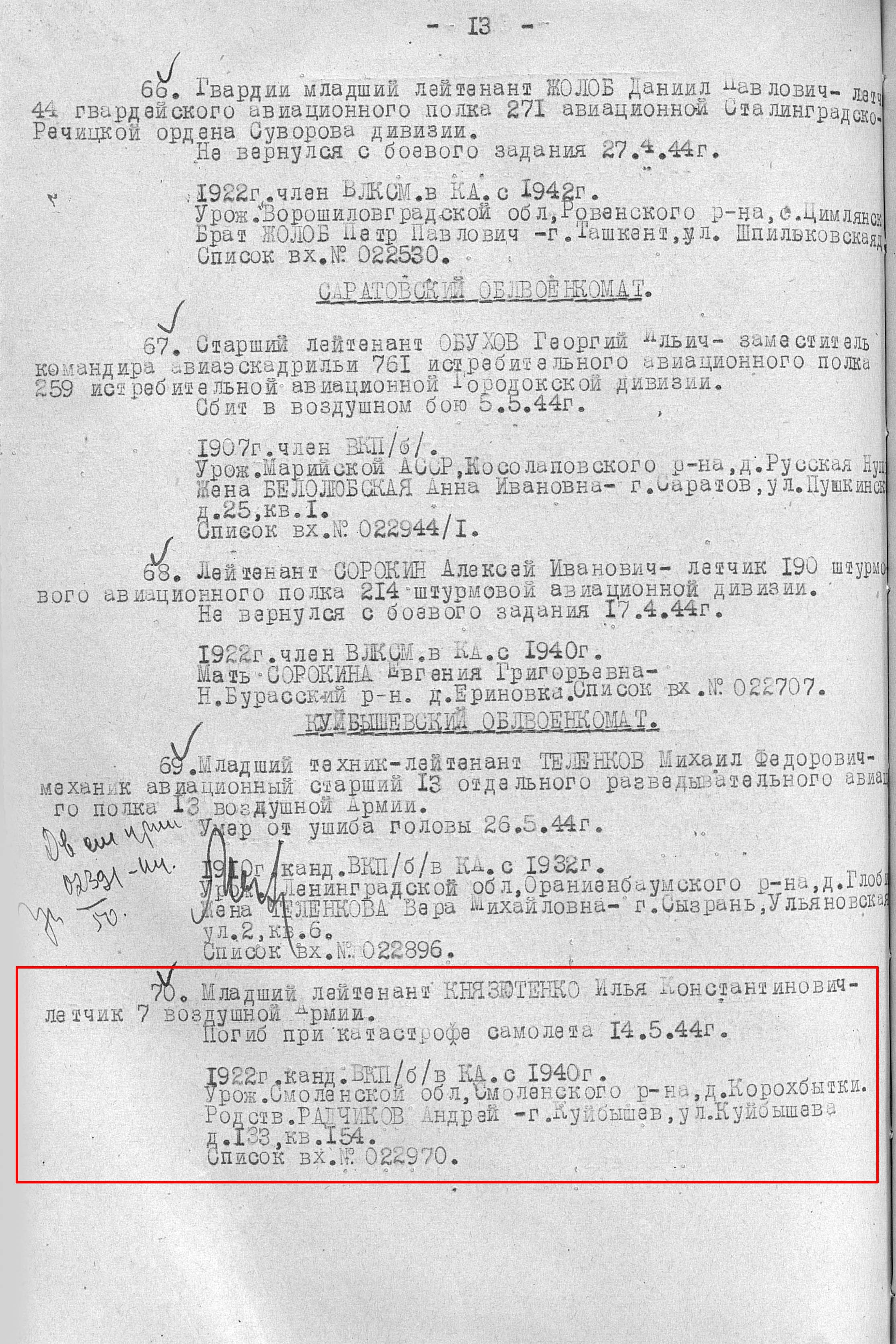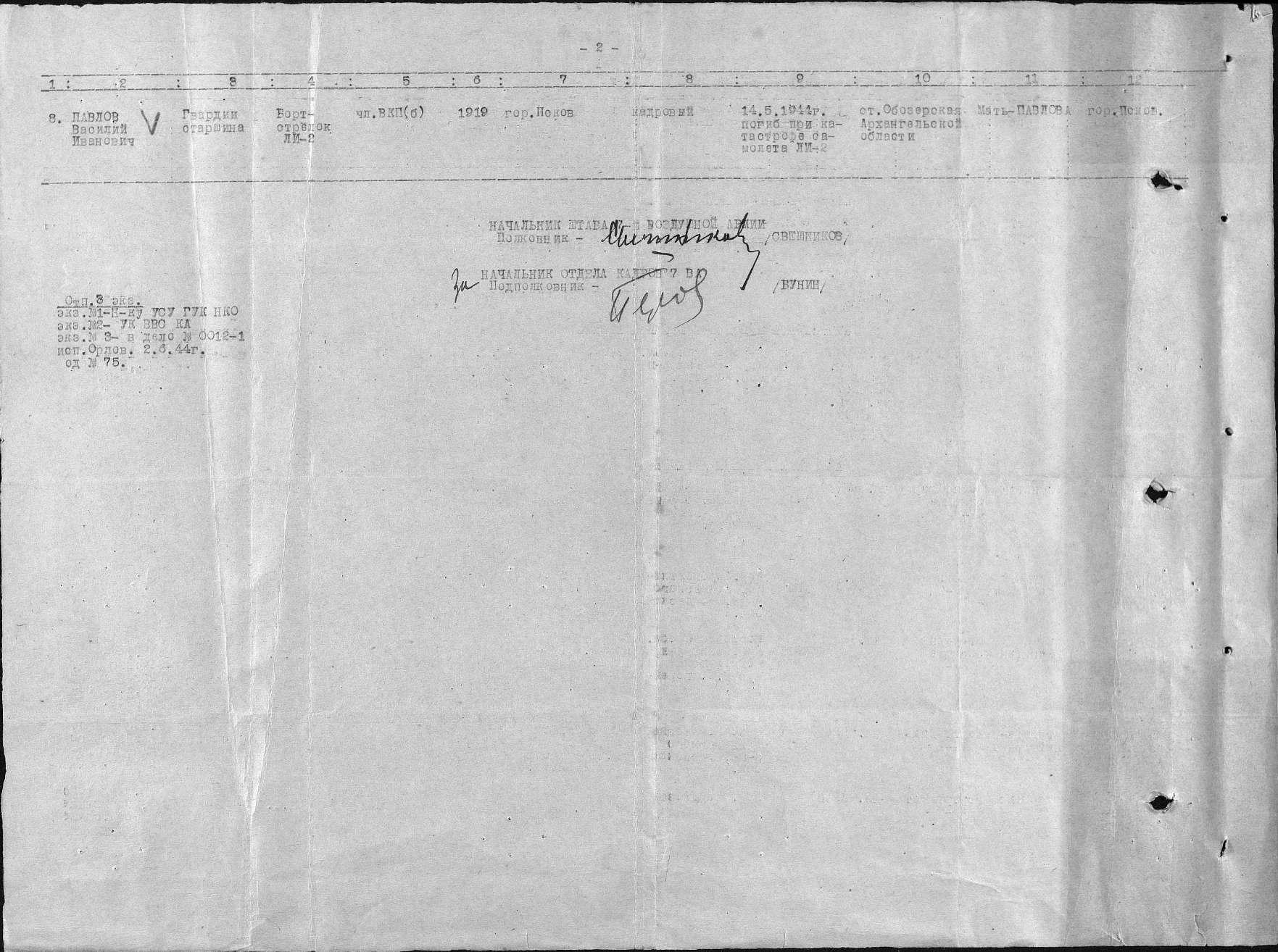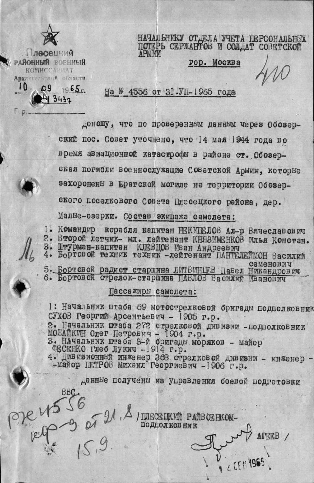 Экипаж самолета и пассажиры, погибшие при катастрофе 14 мая 1944 г.