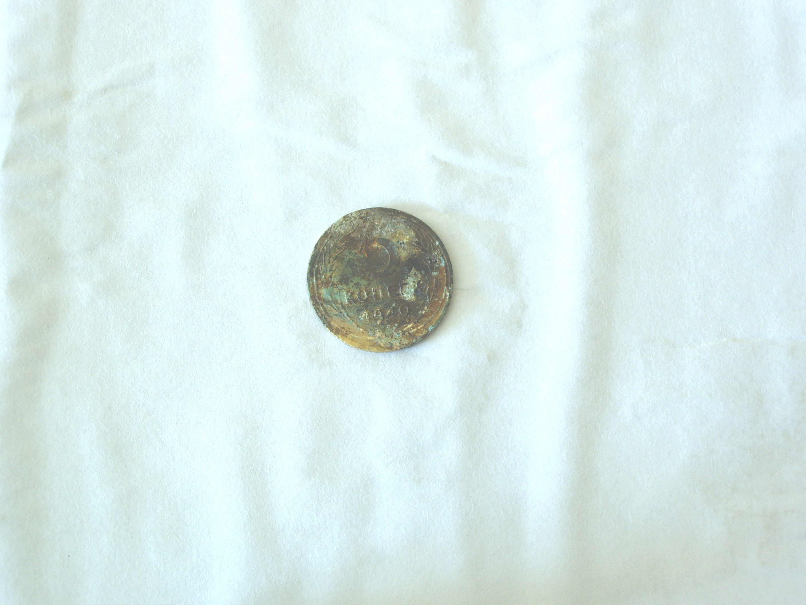 26 августа 2011 г. (пятница) Встали в 10.00 часов. Погода испортилась, все окутано густым туманом, идет мелкий дождь. На штабе экспедиции решили проводить раскопки гидросамолета «Каталина» дальше. В результате поиска были найдены два фрагмента костей летчиков – нижней челюсти и лопатки. Кроме этого были найдены следующие артефакты: монета 5 копеек 1940 года, кокарда на фуражку, обрывки бумаги с надписями, различные части от приборов и оборудования с самолета.