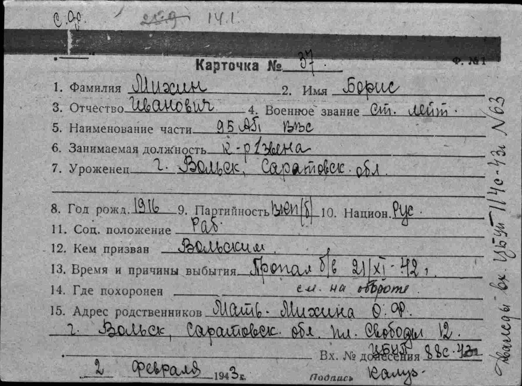 Дата выбытия 21.11.1942