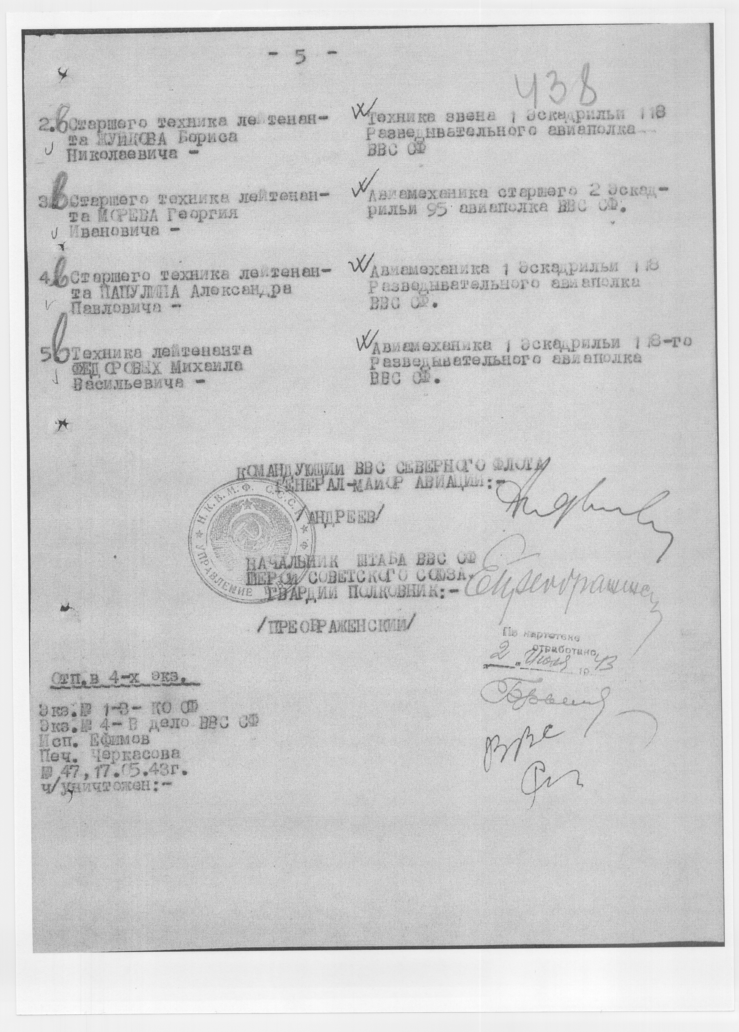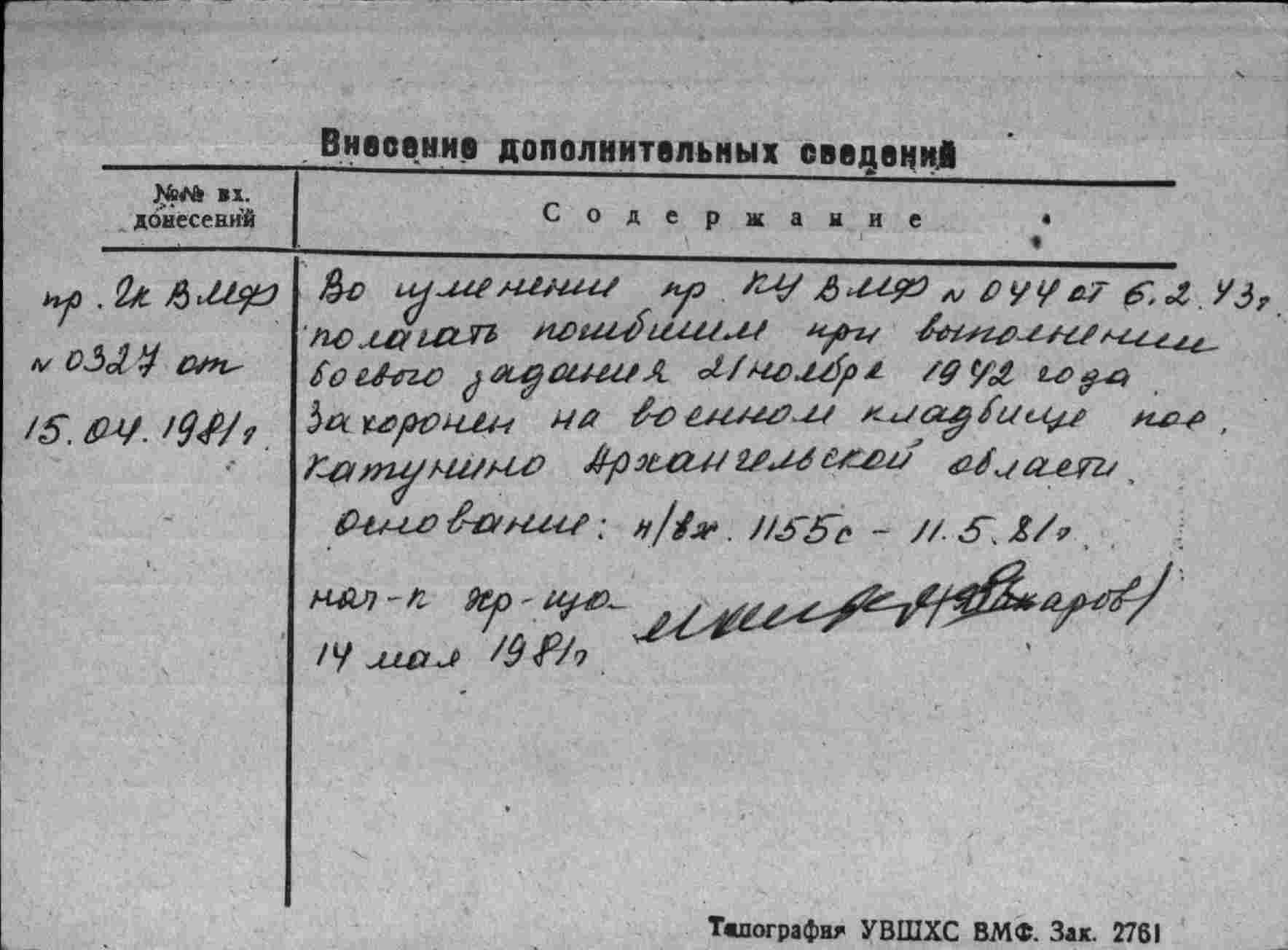 Сообщаю, сведения на летчиков ВВС Северного флота, погибших в 1942 г.