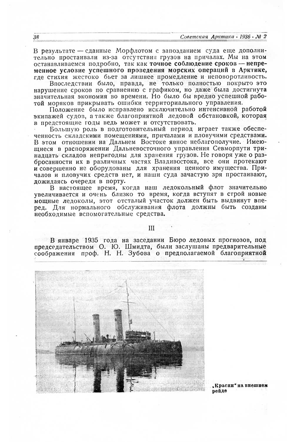 В настоящее время, когда наш ледокольный флот значительно увеличивается и очень близко то время, когда вступят в строй новые мощные ледоколы, этот отсталый участок должен быть выдвинут вперед. Для нормального обслуживания флота должны быть созданы необходимые вспомогательные средства.