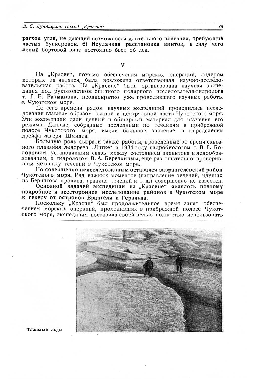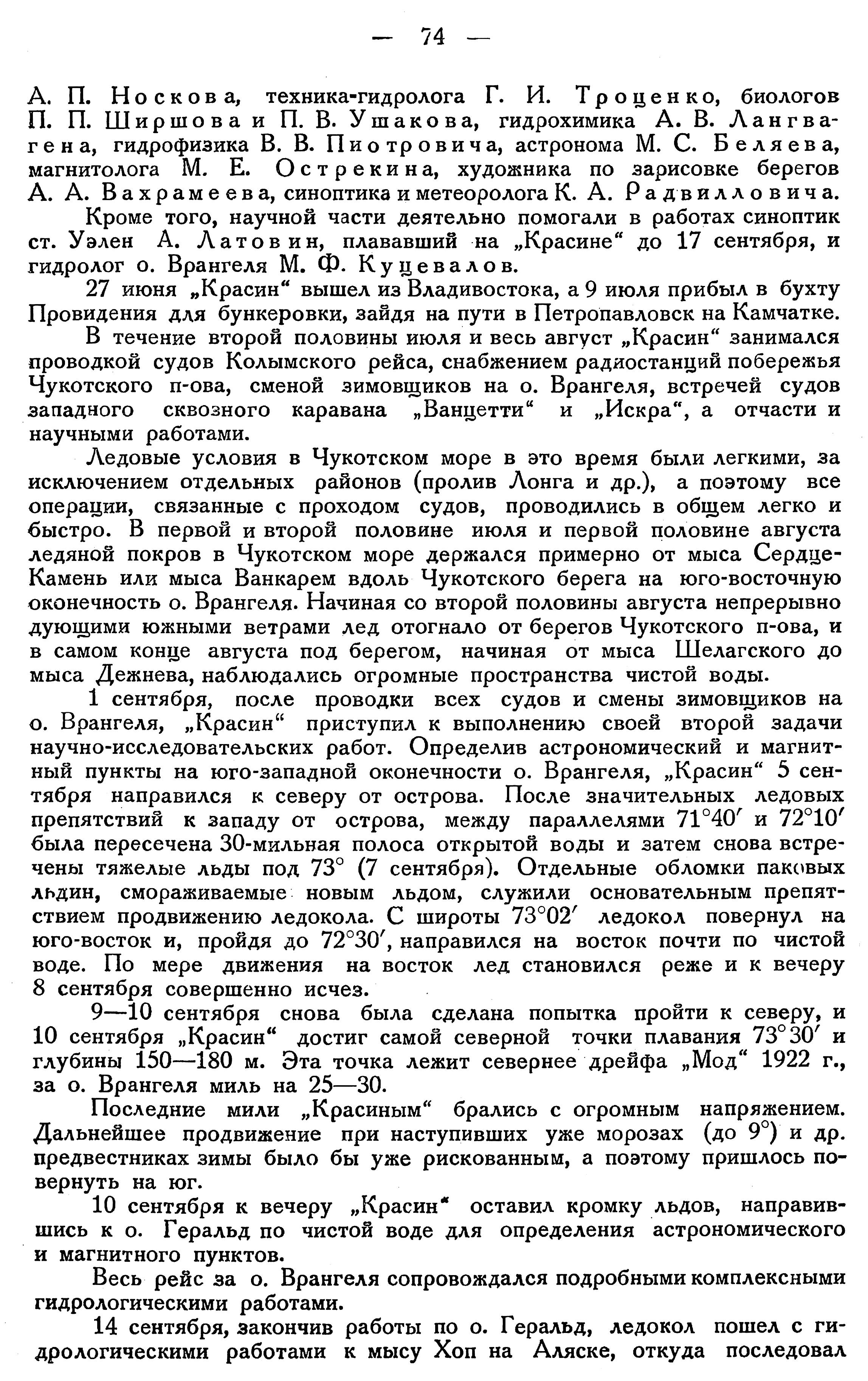 На „Красин", помимо обеспечения морских операций, лидером которых он являлся, была возложена ответственная научно-исследовательская работа. На „Красине" была организована научная экспедиция под руководством опытного полярного исследователя-гидролога т. Г. Е. Ратманова, неоднократно уже проводившего научные работы в Чукотском море.