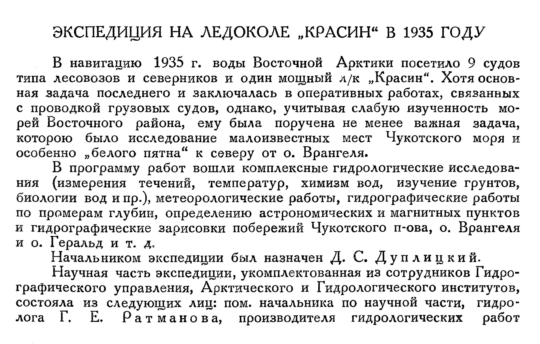 Основной задачей экспедиции на „Красине" являлось поэтому подробное и всестороннее исследование районов в Чукотском море к северу от островов Врангеля и Геральда.