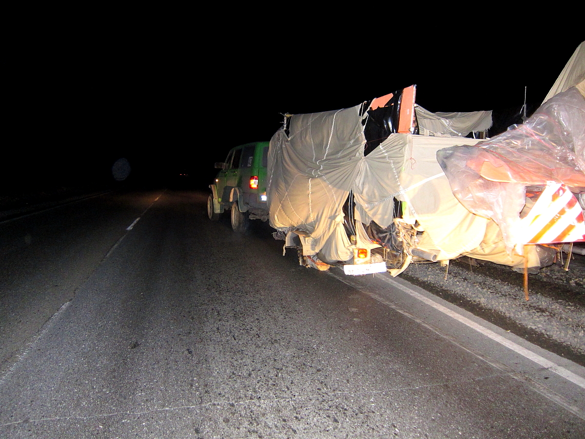 20:50 Обнаружили потерю прицепа. Вернулись, заодно обнаружили потерю шкворня на переднем правом колесе, все это посреди дороги.