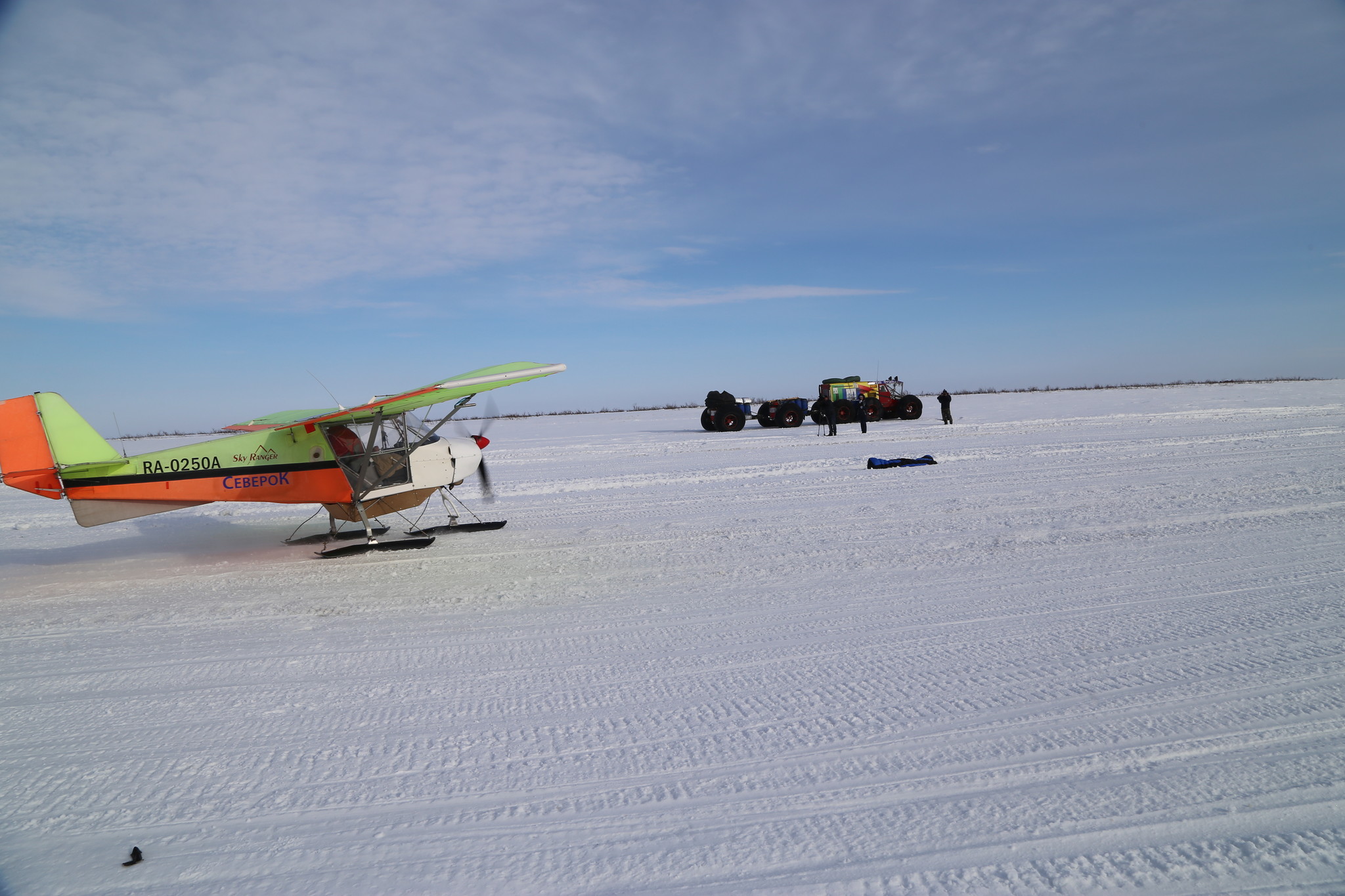 Впервые в практике подобных экспедиций «наземная» партия дополняется малой авиацией. Легкий одномоторный самолет Sky Ranger, адаптированный для полетов в Арктике, будет проходить маршрут вместе с вездеходами, осуществляя разведку пути, заброску топлива и снаряжения, полеты к промежуточным целям. Предстоит очень интересная совместная работа "земли" и "воздуха", что резко расширяет возможности экспедиционных исследований.