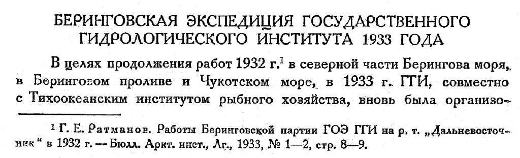 БЕРИНГОВСКАЯ ЭКСПЕДИЦИЯ ГОСУДАРСТВЕННОГО ГИДРОЛОГИЧЕСКОГО ИНСТИТУТА 1933 ГОДА