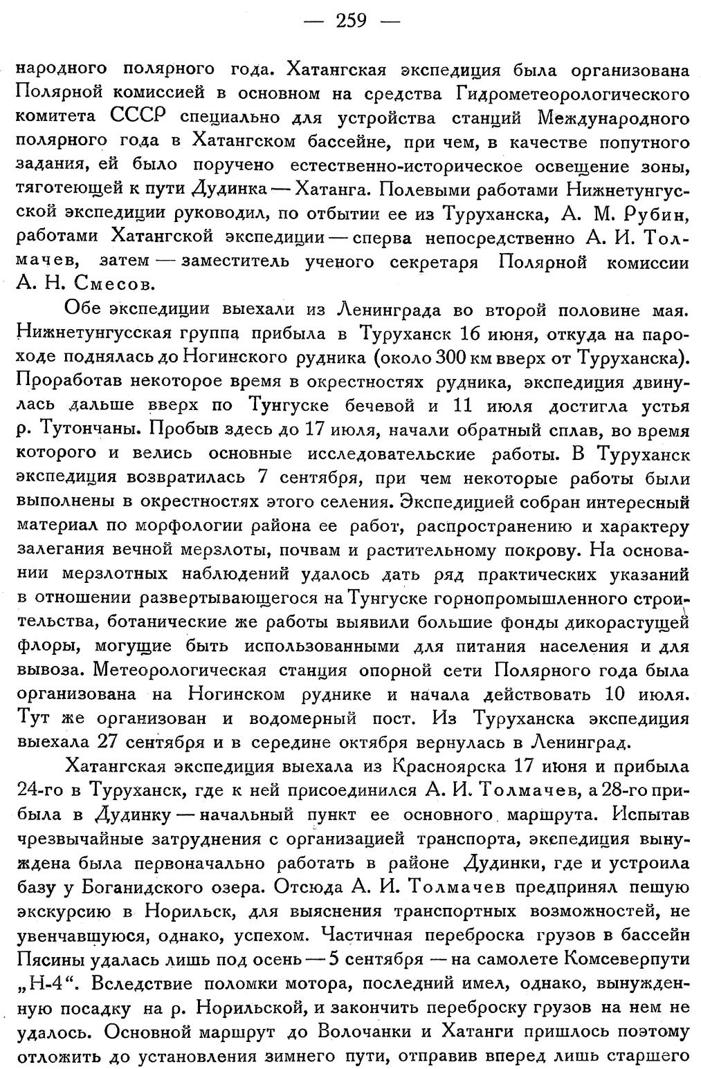 народного полярного года. Хатангская экспедиция была организована Полярной комиссией в основном на средства Гидрометеорологического комитета СССР специально для устройства станций Международного полярного года в Хатангской бассейне, при чем, в качестве попутного задания, ей было поручено естественно-историческое освещение зоны, тяготеющей к пути Дудинка — Хатанга. Полевыми работами Нижнетунгусской экспедиции руководил, по отбытии ее из Туруханска, А. М. Рубин, работами Хатангской экспедиции — сперва непосредственно А. И. Толмачев, затем — заместитель ученого секретаря Полярной комиссии А. Н. Смесов.