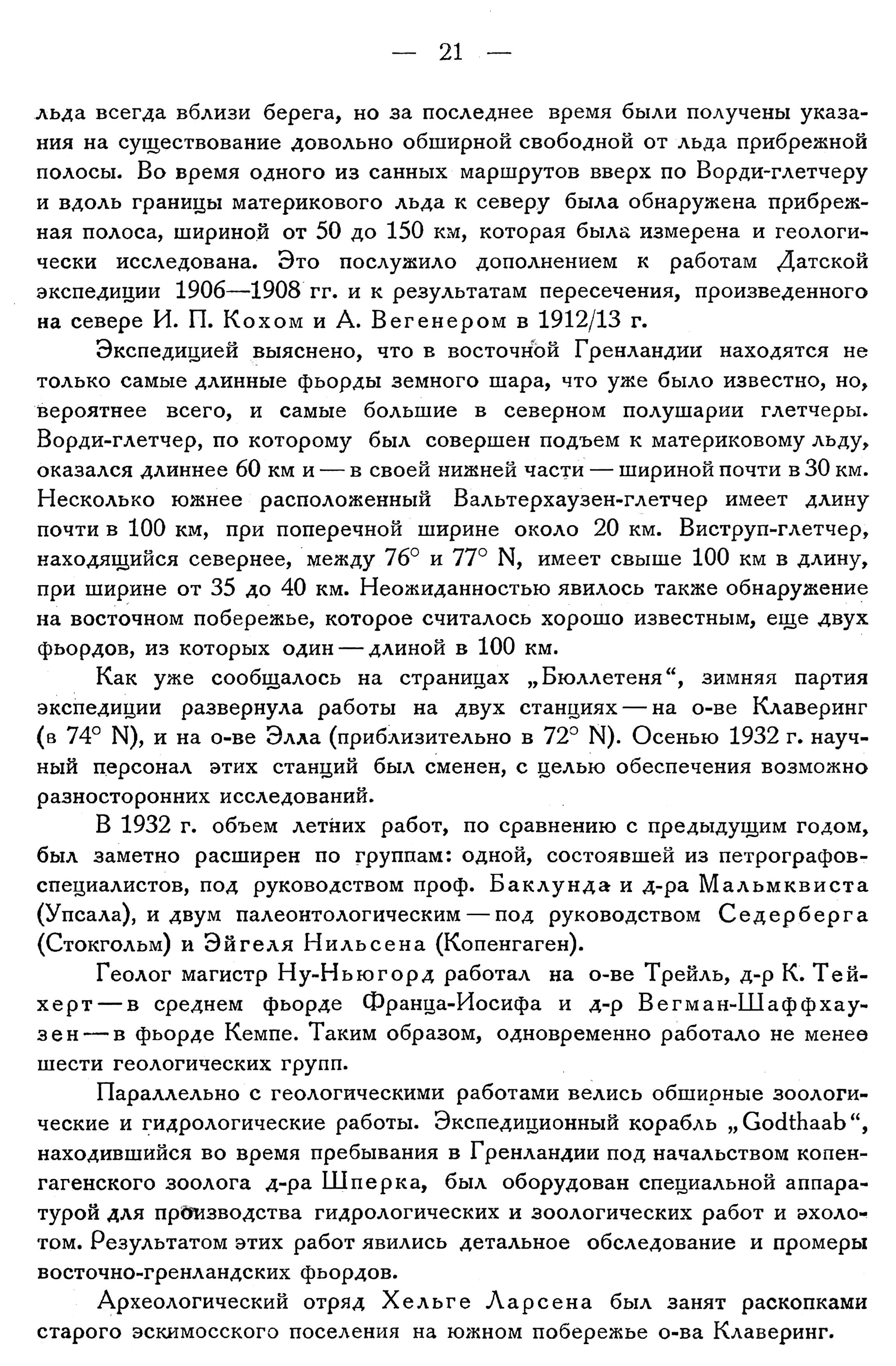 О НАУЧНЫХ РЕЗУЛЬТАТАХ ДАТСКОЙ ЭКСПЕДИЦИИ Д-РА Л. КОХА В ВОСТОЧНУЮ ГРЕНЛАНДИЮ 1)