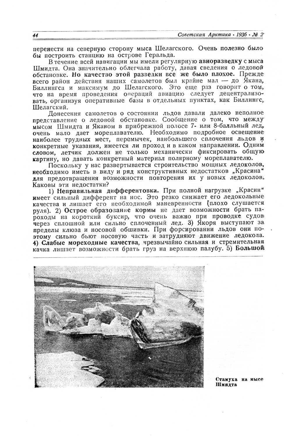 Донесения самолетов о состоянии льдов давали далеко неполное представление о ледовой обстановке. Сообщение о том, что между мысом Шмидта и Яканом в прибрежной полосе 7- или 8-балльный лед, очень мало дает мореплавателю. Необходимо подробное освещение наиболее трудных мест, перемычек, наибольшего сплочения льдов и конкретные указания, имеется ли проход и в каком направлении. Одним словом, летчик должен не только механически фиксировать общую картину, но давать конкретный материал полярному мореплавателю.