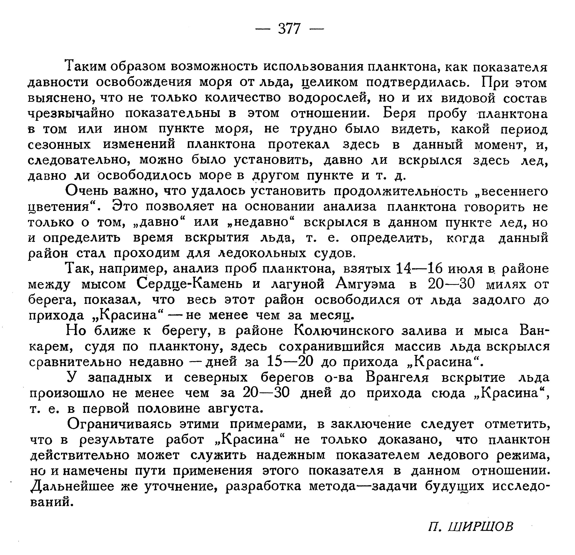 Общая схема течений Чукотского моря, установленная автором настоящих строк на основе работ траулера "Красноармеец" в 1933 г., получила подтверждение; причем, как оказалось, воды Берингова моря, поступающие на север через Берингов пролив, проходят далеко на северозапад за о. Геральд и о. Врангеля. Эта схема прекрасно подтверждается распределением бентонических организмов, как устанавливает П. В. Ушаков, что также устанавливается и сборами планктона, произведенными П. П. Ширшовым.