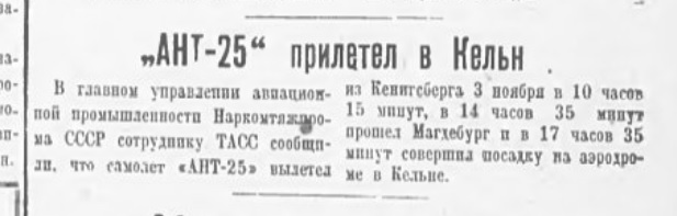 В обслуживании этого перелета метеорологическими данными особенно большую роль сыграла сеть полярных станций Главсевморпути, что отмечено в статье начальника ГАМС Военно-воздушных сил РККА т. Альтовского.