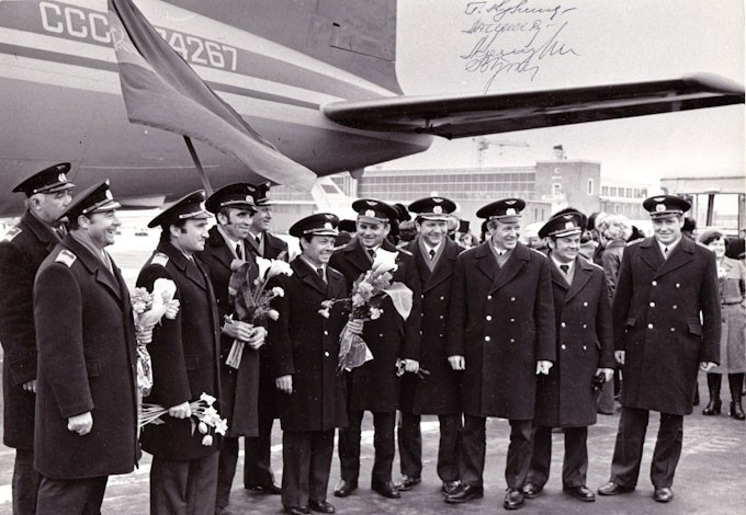Встреча экипажа Ил-18Д «СССР-74267» во Внуково. 23 февраля 1980 г. Фото из архива В.И.Сеса -