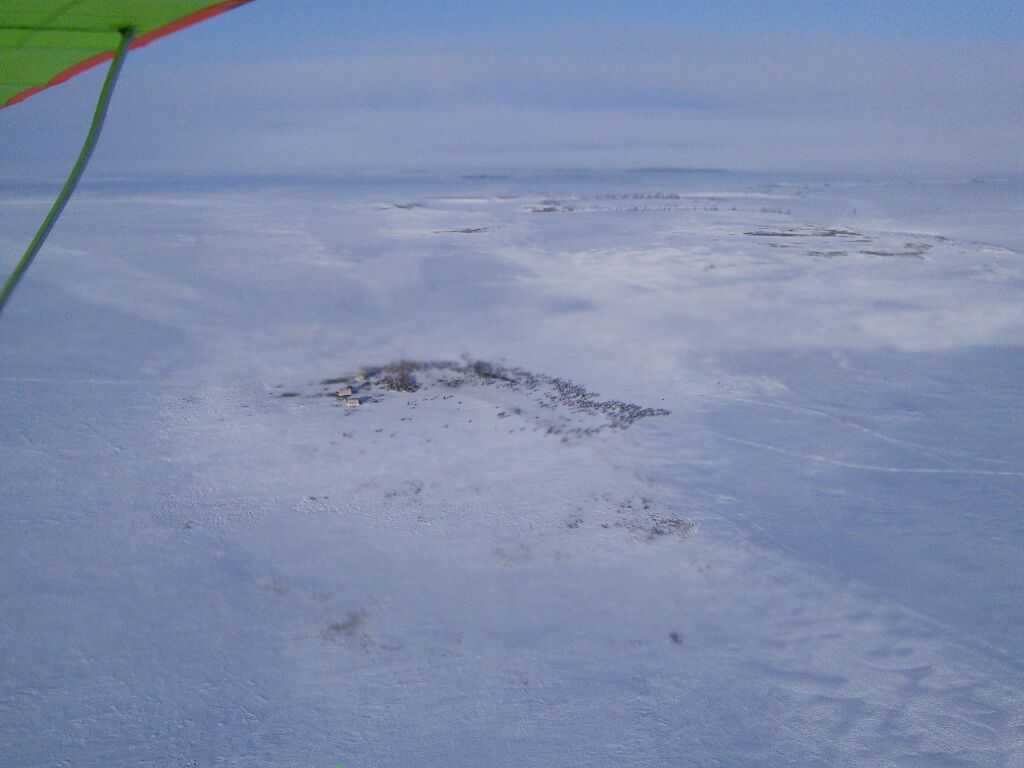 Закончили сборку прицепов вездехода, опробовали пробным выездом, все в порядке и после обеда 11го апреля вездеход ушел на маршрут, предварительно накатав мне взлетку в тундре. Пройдя 120 км, вездеход ночевал 80 км от Тазовского и теперь продолжил движение