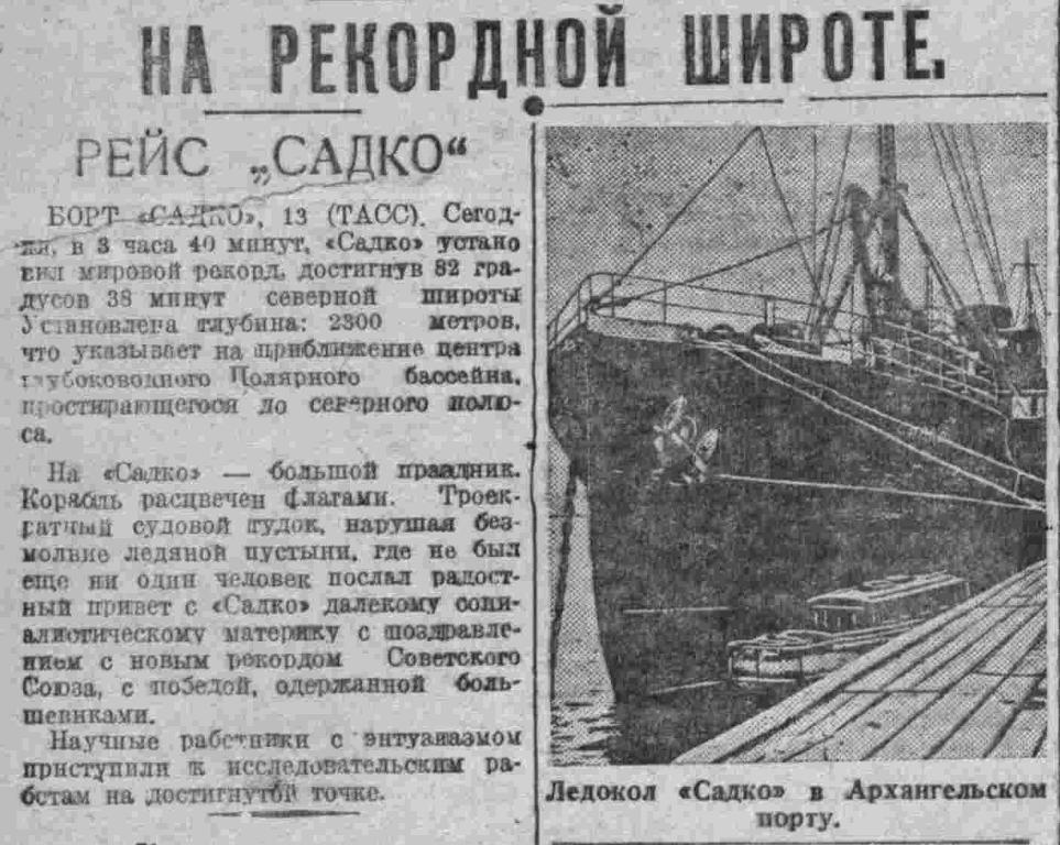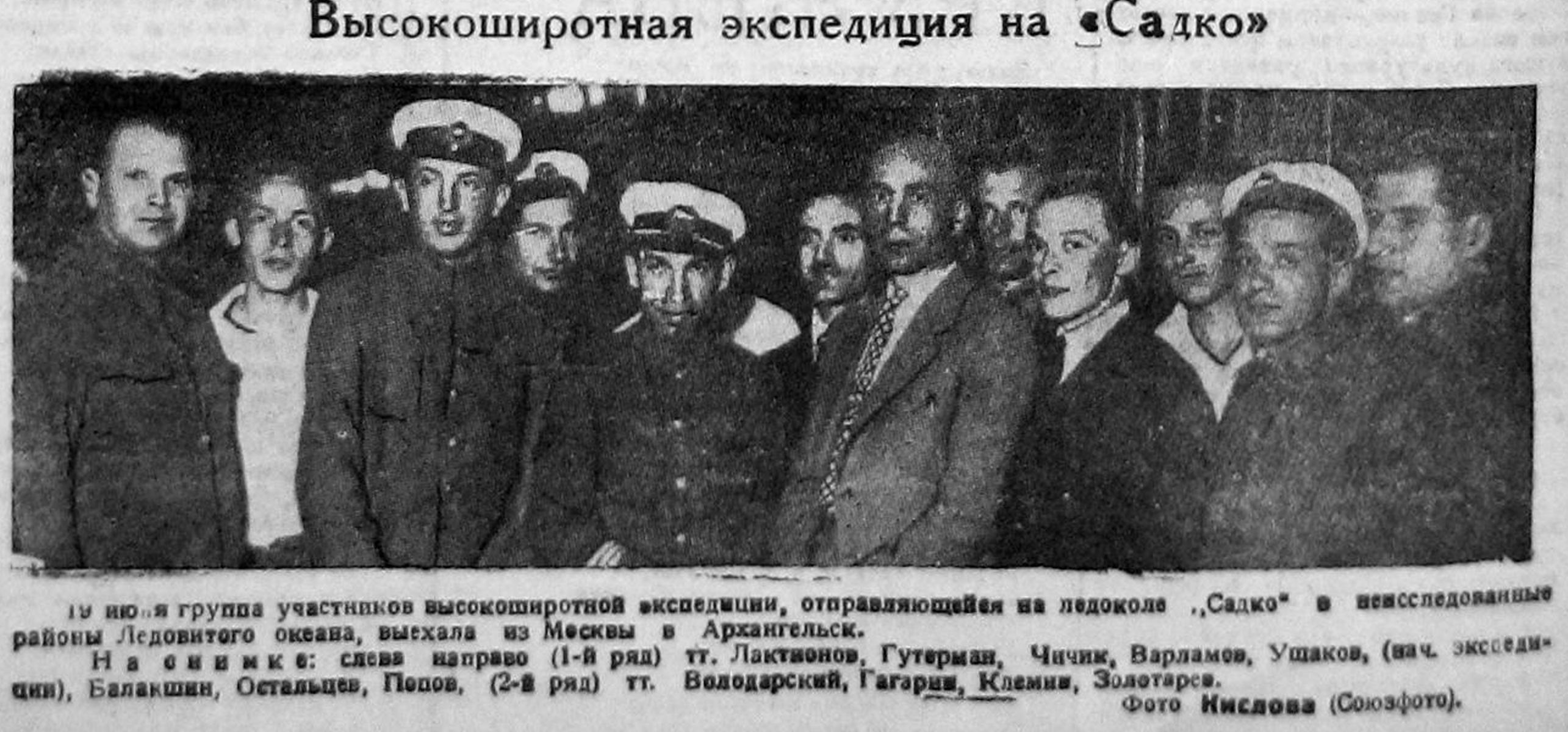 А вот в статье "Пути полярных кораблей. Навигация 1935 г. в арктических водах", опубликованной в "Правде Севера" от 14 мая 1935 г. пишется уже об экспедиции на "Садко". "Садко" идет с экспедицией зам. начальника Севморпути тов. Ушакова в высокие широты."