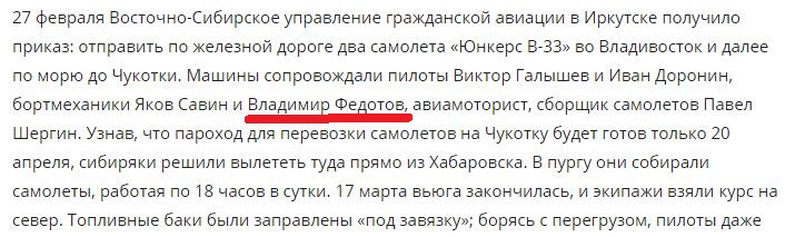 semirek18 пишет: Был бы очень благодарен,если бы Вы помогли с материалом о бортмеханике Федотове В Н (у него в разных местах разные имена-и Владимир ,и Валерий и об его (??)участии и награждении при спасении челюскинцев (Спасение членов экспедиции Нобиле)