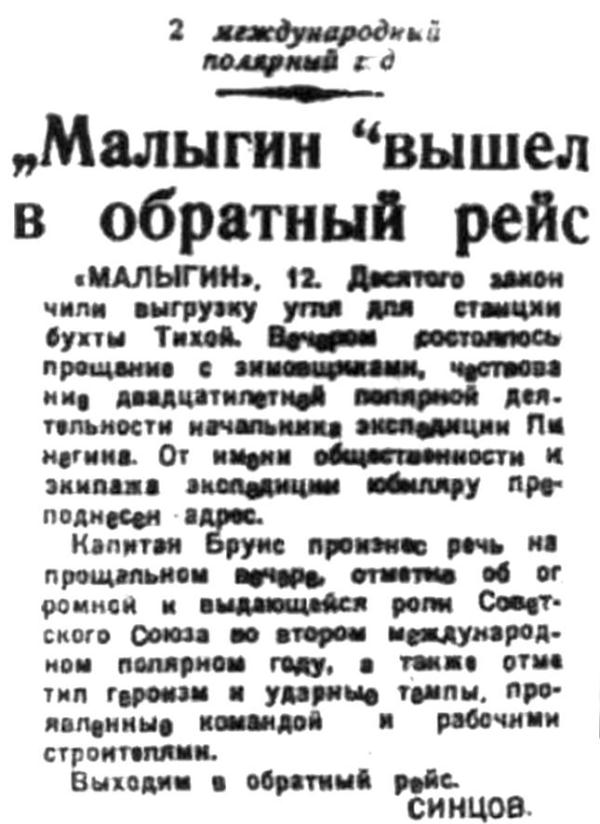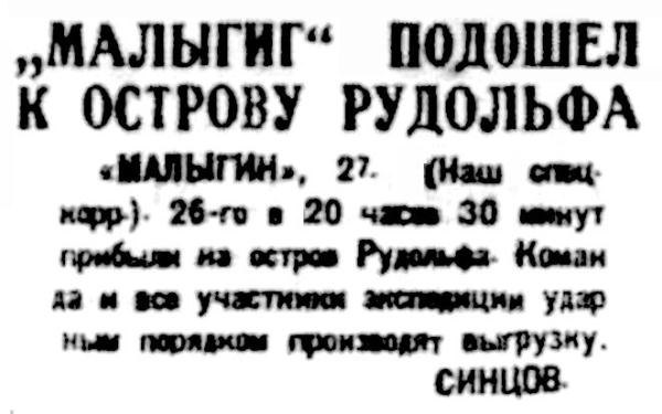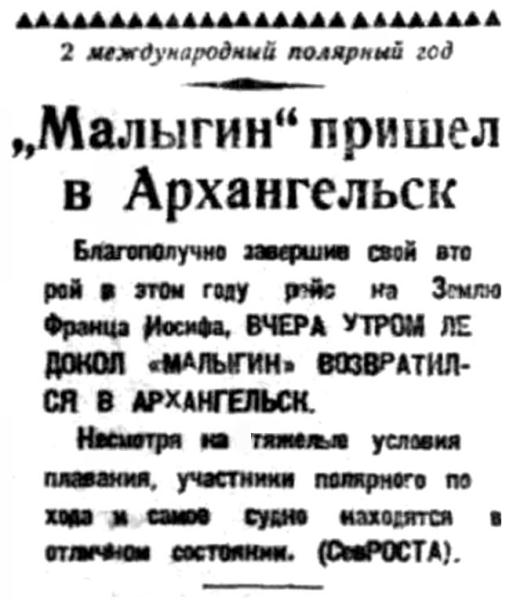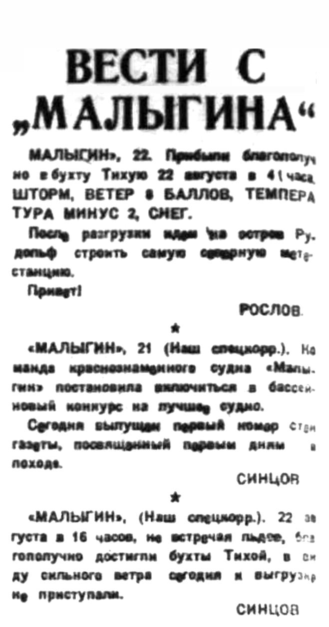 ПОХОД «МАЛЫГИНА» В АРКТИКУ.