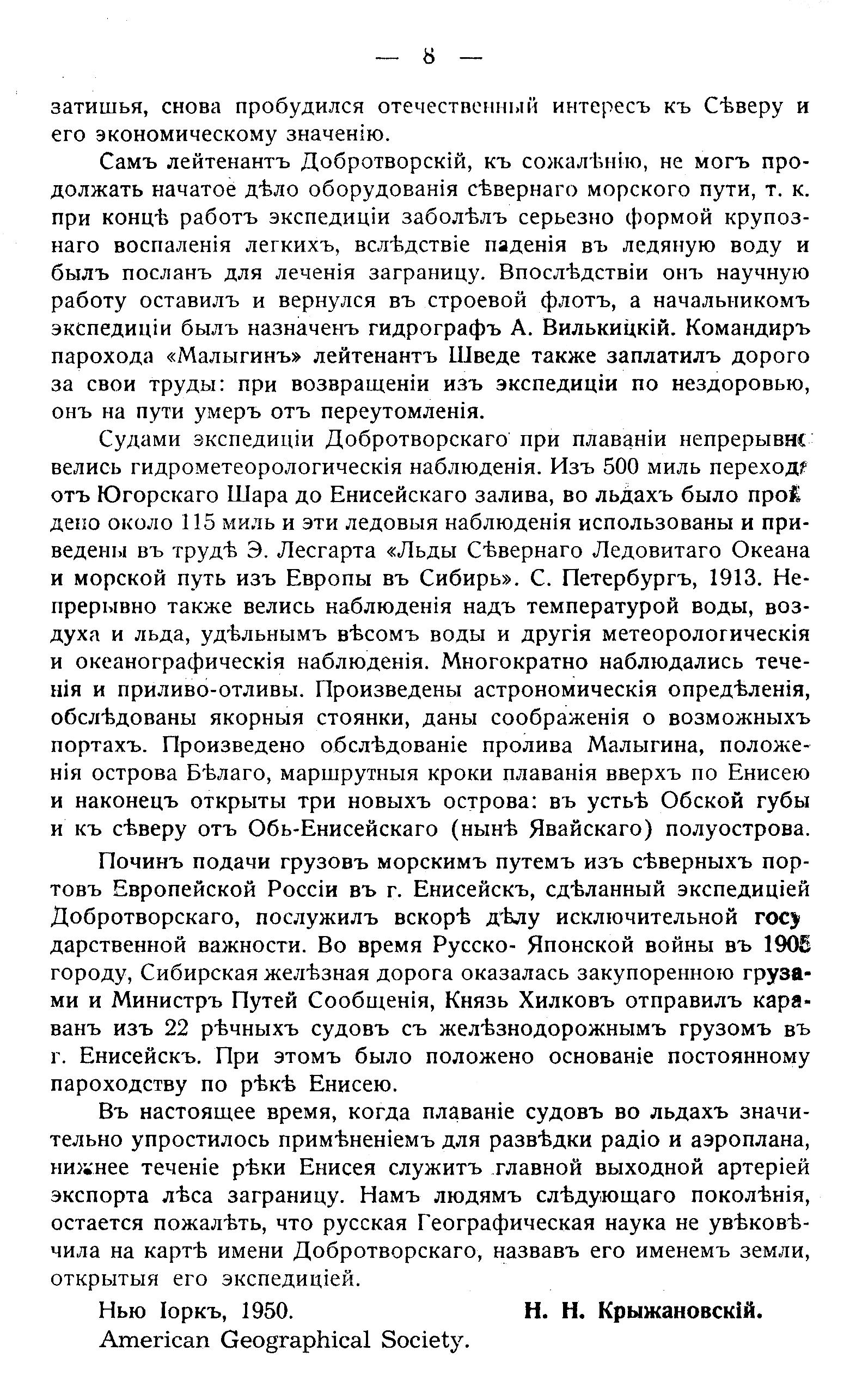 Нью Іоркъ, 1950. Н. Н. Крыжановскій.