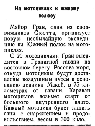На мотоциклах к южному полюсу //Всемирный следопыт, 1931 № 04 с.3