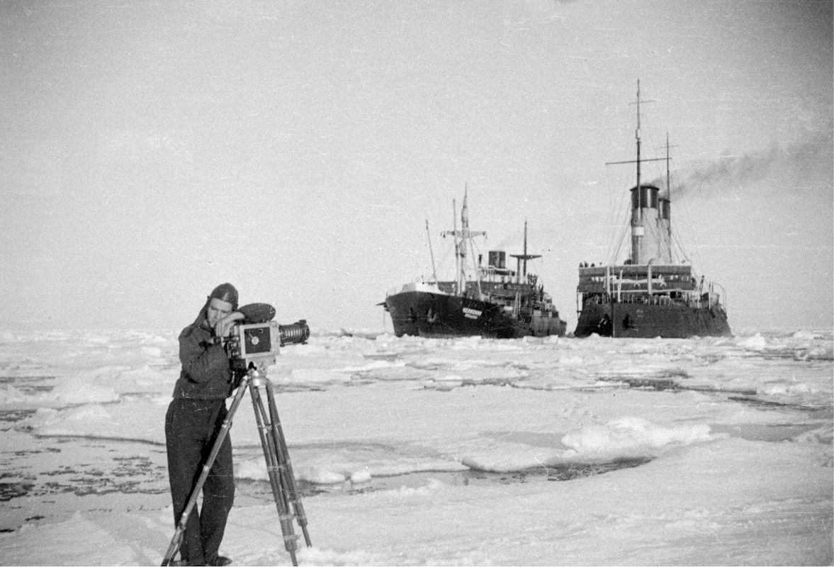 Гибель «Челюскина». 1934 г. Съёмки кинооператора Аркадия Шафрана.