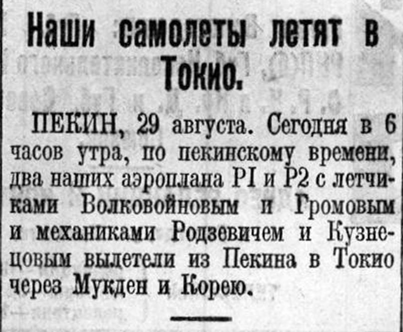 МОСКВА, 11 июля. По достижении Пекина, наши самолеты предполагается использовать для круговых полетов посещения крупных центров Китая и Токио.