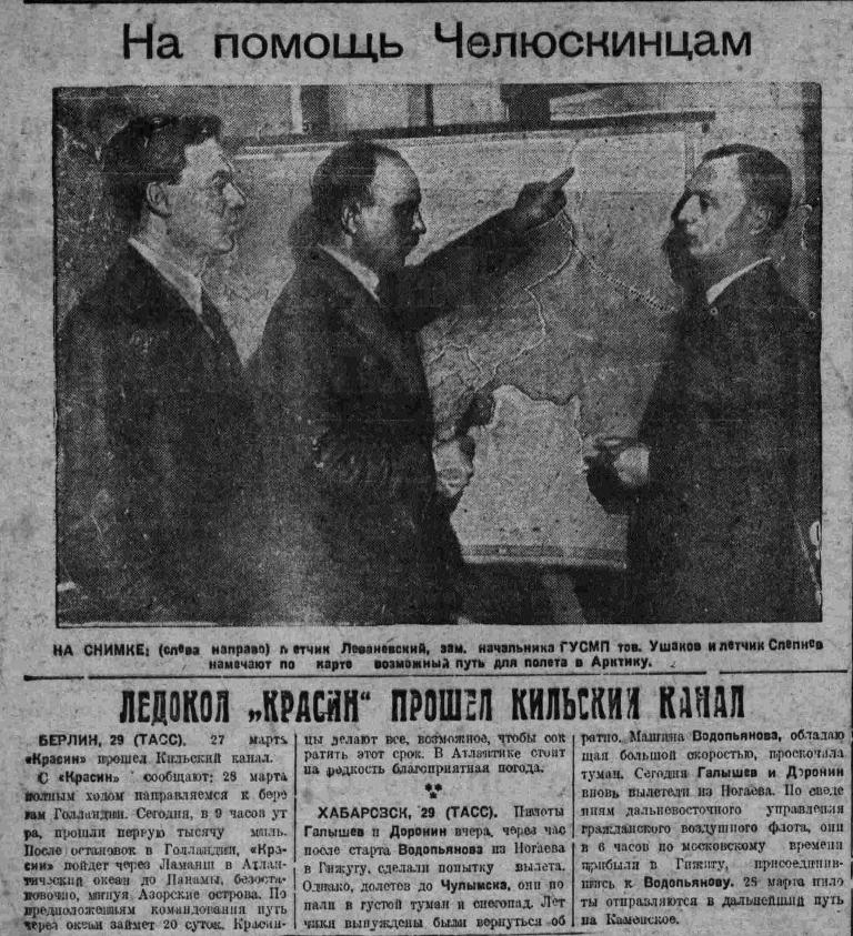 САМОЛЕТЫ, ДИРИЖАБЛИ, ПАРОХОДЫ ИДУТ НА ПОМОЩЬ ЧЕЛЮСКИНЦАМ
