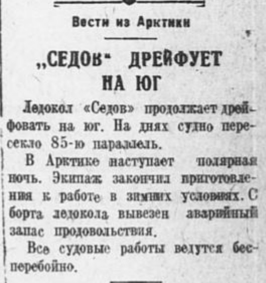 "Комсомолец Заполярья", 12 июня 1939 г. №80: „СЕДОВ" БЫСТРО ПРОДВИГАЕТСЯ НА ЗАПАДБОРТ ЛЕДОКОЛА «СЕДОВ», 10.