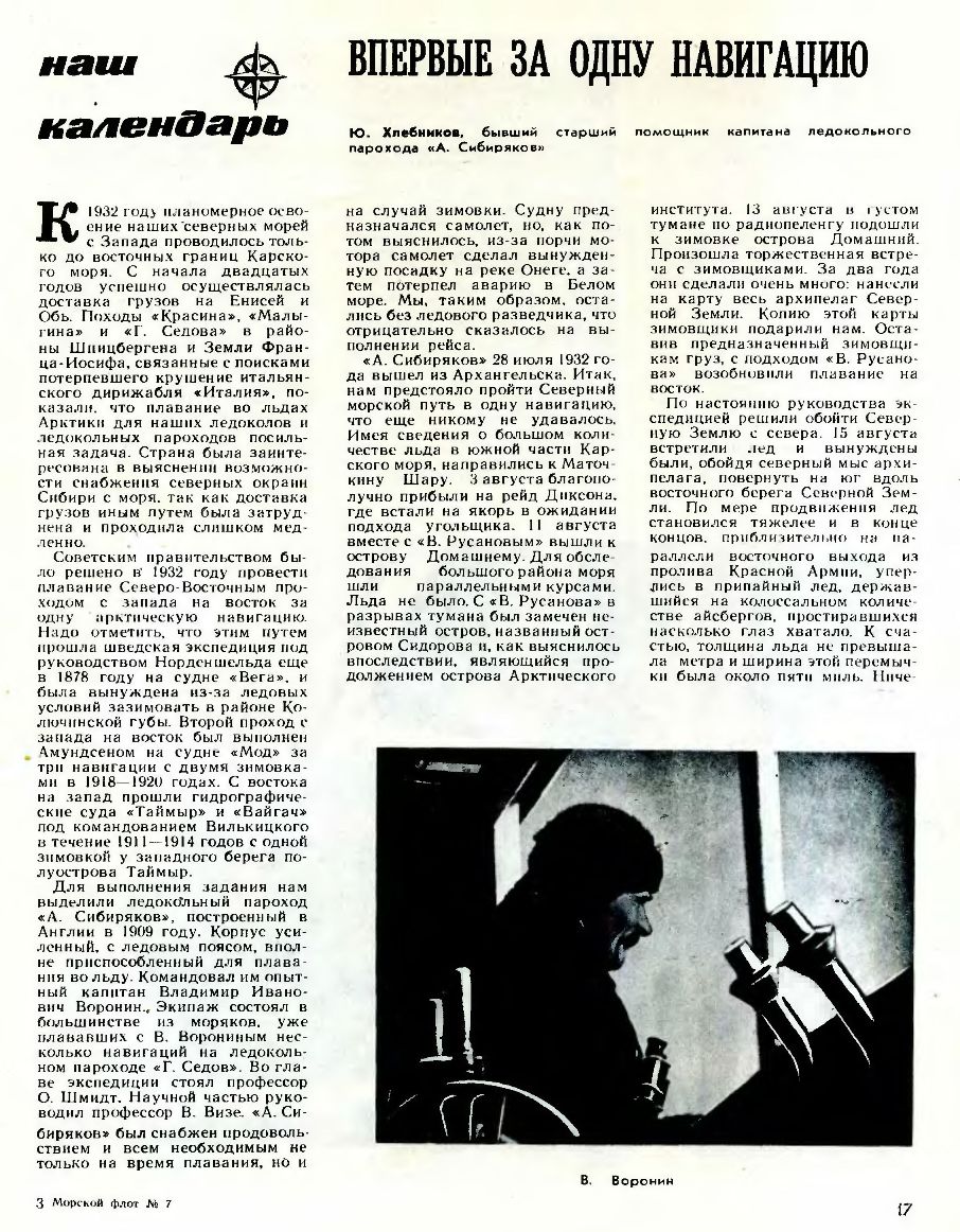 Хлебников Ю.Впервые за одну навигацию// Морской флот №7 1972 с.17-19