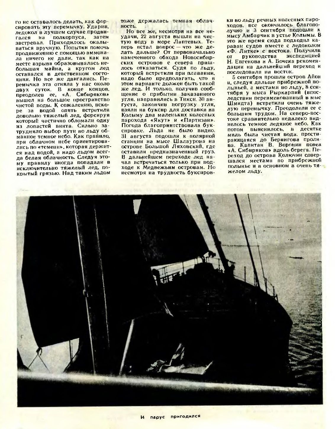 Свежа в памяти последняя встреча в Атлантике, в Бискайе, зимой 1933-1934* года. Я плавал тогда на вновь выстроенном в Ленинграде теплоходе "Двинолес". Мы шли с грузом из Англии в Италию. Было известно, что ледокол "А. М. Сибиряков", возвращающийся из своего замечательного похода через весь Ледовитый океан, должен встретиться с нами. "Сибиряков" шел из Японии. Радист "Двинолеса" с вниманием слушал "Сибирякова", но все безрезультатно. Когда "Двинолес" пришел в Бискай, приближаясь к берегам Франции, мы, наконец, услышали радио "Сибирякова".
