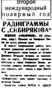 За выдающиеся заслуги, проявленные в героическом походе ледокола «Сибиряков» через Ледовитый океан в одну навигацию, наградить орденом Красного знамени ледокол «Сибиряков» № 107, вручен 19 мая 1933 г. и орденом Трудового красного знамени – 35 человек команды ледокола и 25 других участников этой экспедиции: