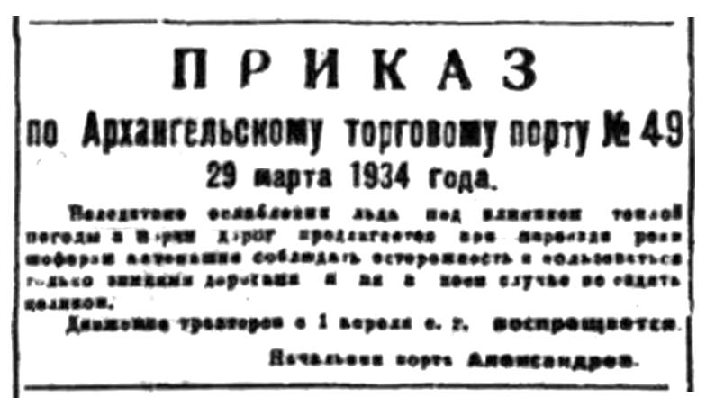 Правда Севера, 1934, № 074_30-03-1934 приказ порта о движении по льду.jpg