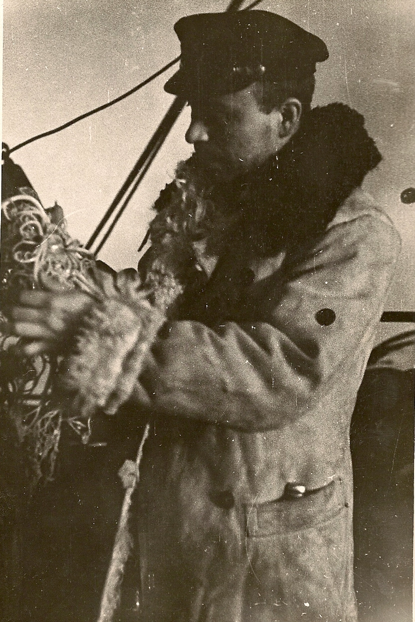 "Садко" 1935. Держит собаку за голову-капитан Н.М.Николаев. Других не знаю. :)