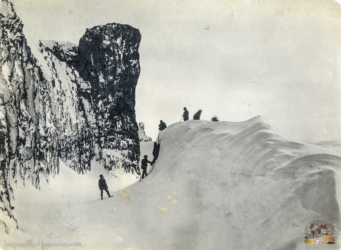 Сегодня к вечеру потихло, температура поднялась до -6о. Хороший, тихий день. Завтра праздник: воздвижение Честного Животворящего Креста Господня. Празднику и погода благоприятствует. Обилие полен с опилками. Наружную стенку камбуза заколотили кап и двери в кают-компании. За ужином пили горячий пирог с моржатиной. Очень вкусной и даже нежной. Вечером затеплились лампадки (в каютах) перед образами, в каюте стало как-то теплее и уютнее. Сейчас звучит рояль и ты переносишься в фантастических мечтаниях далеко далеко, за море, домой, туда где, может быть, в настоящую минуту сидит, облокотившись о столик и склонив головку на руку, в таких же мечтаниях моя маленькая Веруня, предмет моего постоянного воспоминания, предмет моего счастья и наслаждения… Очнись, Веруня, посмотри на карту и в точке под 80о23’ с.ш. и 53о восточной долготы от грин. ты, если не увидишь, то почувствуешь любящего тебя твоего Георгия. Он сейчас с тобой всей душой, всем сердцем и всеми мыслями. Привет тебе, мой дорогой друг, и горячий, нежный поцелуй. Спокойной ночи и приятных, радостных сновидений. Я же желаю видеть во сне только тебя…